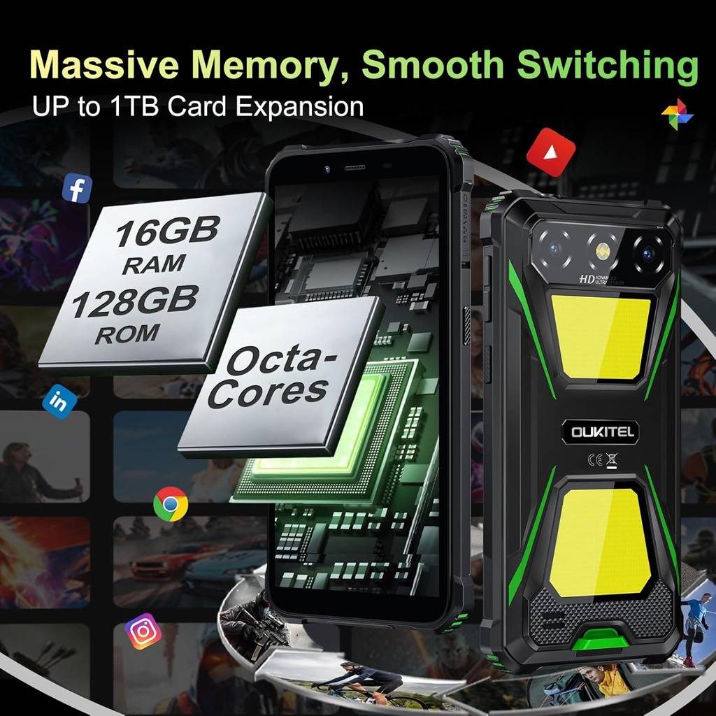 Oukitel G5 es un smartphone ultra resistente diseñado para entornos exigentes, combinando una construcción certificada a nivel militar con una enorme batería de 6300 mAh y una linterna tipo flood dedicada, ideal para trabajo en exteriores, emergencias o actividades nocturnas. Su diseño robusto, resistencia extrema y Android 14 lo convierten en una herramienta confiable para quienes priorizan durabilidad, autonomía y funcionalidad real.